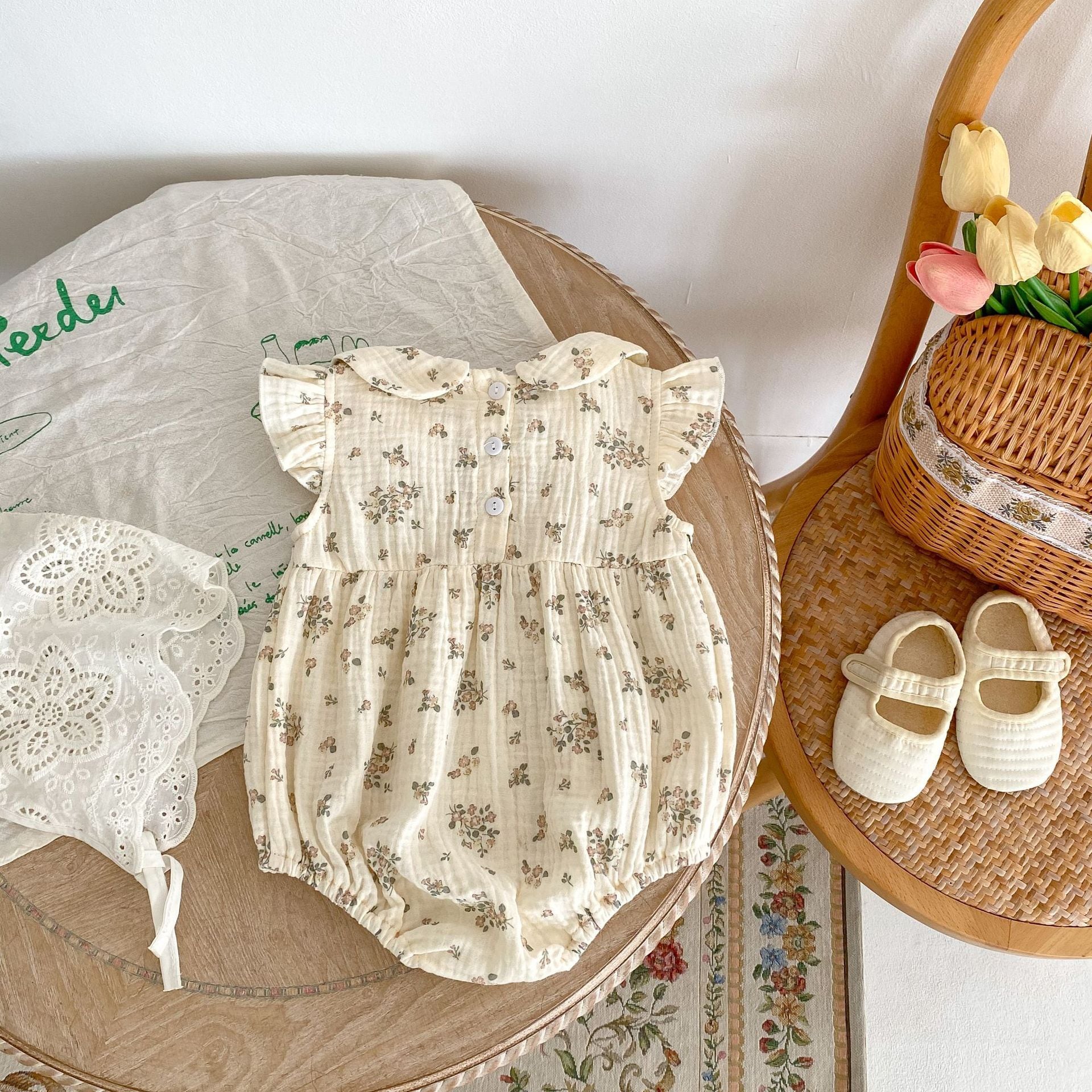 ガーゼ生地のような優しい肌触りで胸元の